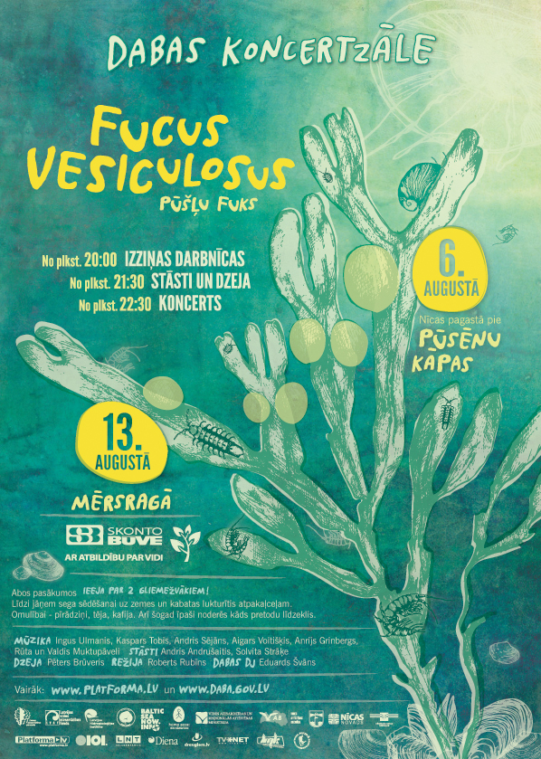 Zinātnes, mūzikas, dzejas un vizuālās mākslas pasākums "Dabas koncertzāle" šogad veltīta Pūšļu fukam Fucus Vesiculosus un notiks 6.augustā Nīcas pagastā pie Pūsēnu kāpas un 13.augustā Mērsragā netālu no vecās bākas.