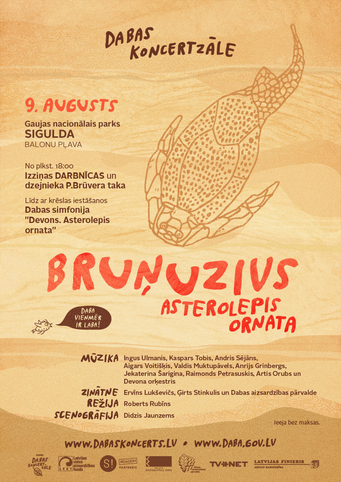 Dabas koncertzāles galvenais varonis, kas palīdzēs izdzīvot šo stāstu, šogad būs bruņuzivs Asterolepis ornata jeb Zvaigžņotās zvīņās tērptā (tulk. no latīņu val.). Tā ir «vienaudze» vairāk nekā 400 miljonu gadu vecajiem Gaujas senielejas krastus veidojošajiem smilšakmeņiem. Šie ieži radušies izgulsnējoties un sacementējoties smiltīm un māliem Devona jūras seklūdenī un milzīgu upju deltās, kas tajos senajos laikos bija mūsdienu Latvijas cietzemes vietā. Gaujas smilšainajās sērēs bruņuzivju kaula bruņu fragmenti rūpīgam dabas vērotājam un pētniekam atrodami vēl mūsdienās.