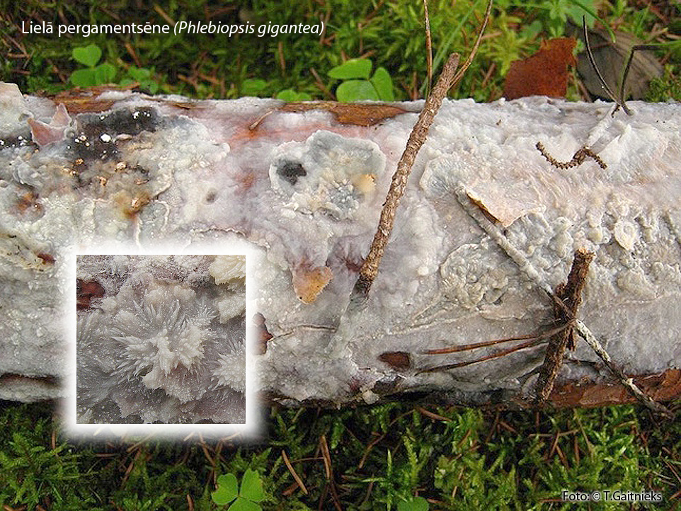 Gada sēne >>> Lielā pergamentsēne (Phlebiopsis gigantea)