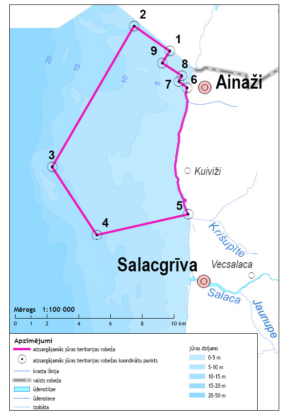 Administratīvais iedalījums: Teritorija atrodas Latvijas Republikas Baltijas jūras Rīgas līča ziemeļaustrumu daļā iepretim Salacgrīvas novadam.