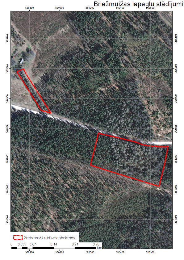 Stādījumu teritorijā sastopami tikai divi svešzemju sugu taksoni Eiropas lapegle (Larix decidua) un Ledebūra lapegle (Larix ledebourii), kā arī faktiski dabā dendroloģiskais stādījums sastāv no alejas un bioloģiski vērtīga meža. Aleja ir dendroloģiski ļoti vērtīga, savukārt mežaudzē starp āra bērziem, parastajām priedēm, parastajām eglēm aug liela izmēra, nobriedušas un ievērības cienīgas ļoti vērtīgas un izcilas lapegles.