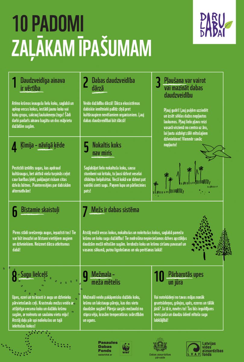Īsie ieteikumi zemes īpašniekiem "10 PADOMI ZAĻĀKAM IPAŠUMAM":