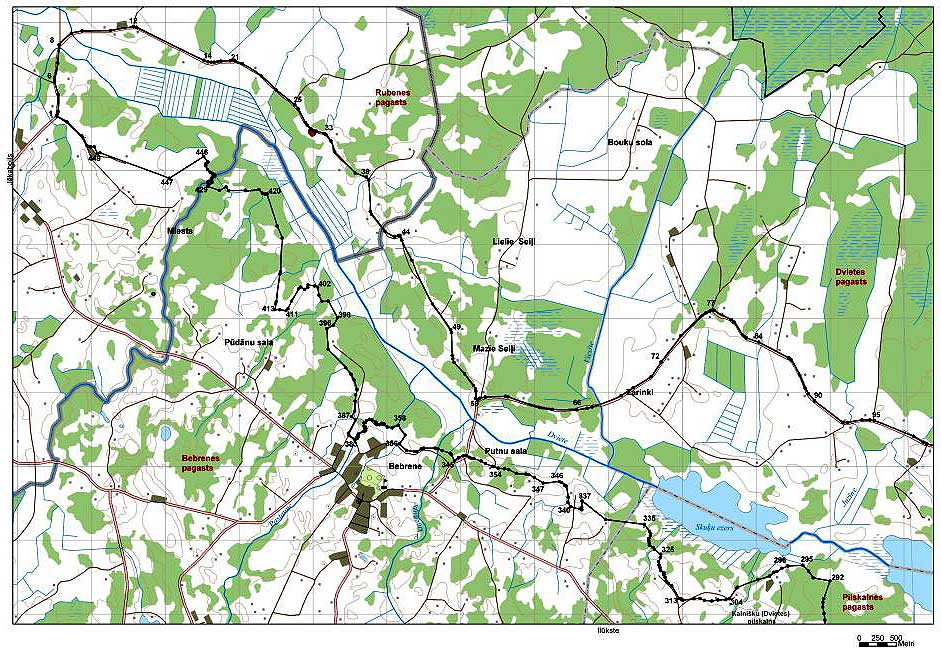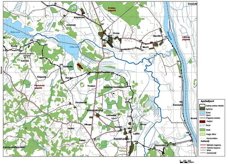 Administratīvais iedalījums: Ilūkstes novada Bebrenes pagasts Dvietes pagasts Pilskalnes pagasts; Jēkabpils novada Rubenes pagasts.