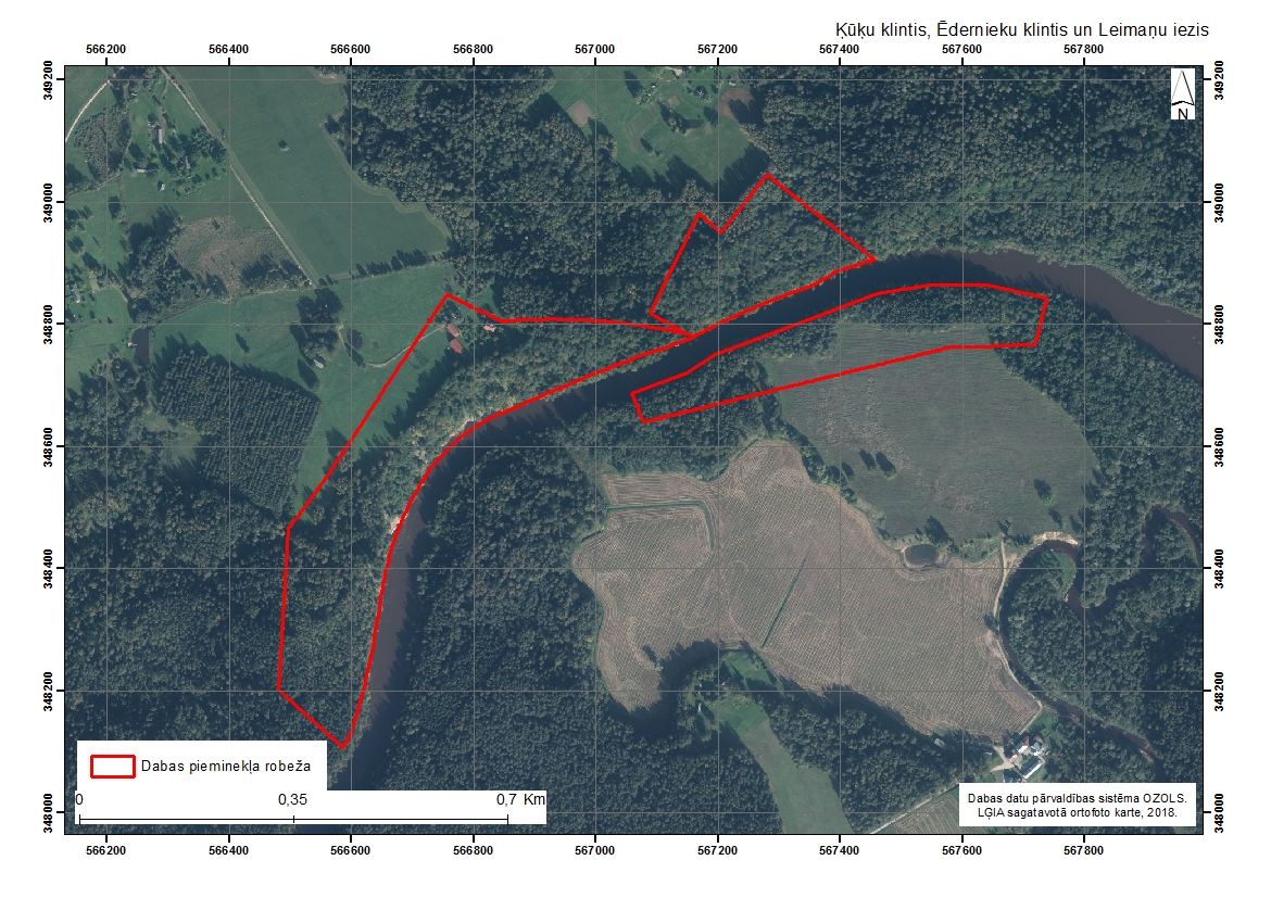 Dabas pieminekli veido līdz 43 m augstās Gaujas labā pamatkrasta kraujas – Ķūķu iezis un Ēdernieku klintis, kā arī Leimaņu iezis kreisajā krastā, kuros atsedzas vidējā devona Živetas stāva Gaujas svītas smilšakmeņi un mālainie nogulumi, kā arī, Ķūķu ieža augšdaļā - augšējā devona Franas stāva Amatas svītas smilšakmeņi. Ģeoloģiskā griezuma apakšdaļā Gaujas svītas smilšakmeņi veido no upes redzamās, krāšņās klintis ar augstumu līdz aptuveni 15 m. Ķūķu ieža atsegumu kopējais garums ir 570 m, Ēdernieku klintīm – 310 m, augstums līdz 10 m, bet Leimaņu iezim – 660 m, augstums līdz 8 m.