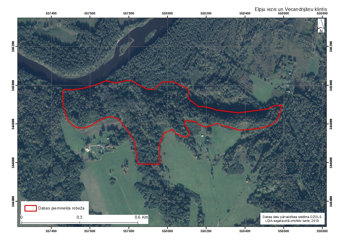 Robežas vilktas atbilstoši dabas veidojumu izvietojumam. Lielākajā daļā teritorijas robežas ir precizētas nedaudz, balstoties uz Vildogas krasta konfigurāciju, gravu posmiem, kur ir atsegumi, kā arī zemes īpašumu kadastra un mežaudžu nogabalu robežām (kur tas ir iespējams). Būtiskākais precizējums ir Tildurgas kanjona ar Gančausku alu iekļaušana dabas pieminekļa teritorijā. Šis kanjons ir viena no unikālākajām dabas vērtībām Elpju ieža un Vecandrijāņu klinšu apkārtnē, un tas ir savdabīgs veidojums pat Latvijas teritorijai kopumā.