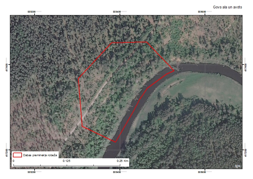 Vidusdevona Živeta stāva Burtnieku svītas paralēli slāņota un slīpslāņota smilšakmens atsegumi veido unikālu avota erozijas un fiziskās dēdēšanas veidojumu – cirkveida klinšu ieloku aptuveni 20 m diametrā ar pārkari un nobrukumu rezultātā izveidojušos smilts materiāla konusu ieloka centrā. Ieloka dziļumā atrodas plaša niša, kas turpinās kā ala un dziļākajā daļā ir pildīta ar avota ūdeni. Ieloka dienvidu malā, nogāzes lejasdaļā ir Mazā Govs ala – šaura un zema, 4 m gara ala. Iezī novērojamas līdz 1 m biezas slīpslāņojuma sērijas, kas šķērsgriezumā ir kā muldveida struktūras.