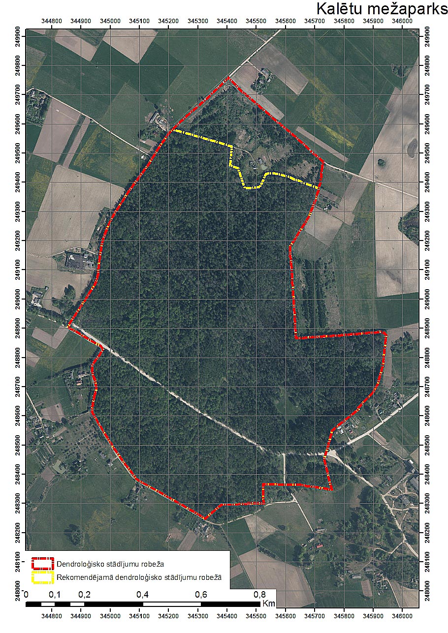 Dendroloģisko stādījumu teritorijā Kalētu mežaparkā konstatēti īpaši aizsargājamie Eiropas Savienības meža biotopi - Ozolu meži, Veci jaukti platlapju meži un Sugām bagāti egļu meži. Mežaparka teritorijā sastopamas īpaši aizsargājamās sugas - lapkoku praulgrauzis (Osmoderma eremita), spožā skudra (Lasius fuliginosus), daudzveidīgā ksilārija (Xylaria polimorpha), kokvarde (Hyla arborea), kā arī teritorijā sastopama ierobežoti izmantojamā suga parka vīngliemezis (Helix pomatia) un reti sastopama sēņu suga - krokainā kazbārde (Sparassis crispa), kas ierakstīta Latvijas Sarkanajā grāmatā 3. kategorijā. Mežaparka teritorijā ir konstatēti 14 dižkoki, no tiem vislielākā ir parastā priede (Pinus sylvestris) ar 3,59 m stumbra apkārtmēru un parastais ozols (Quercus robur) ar 4,83 m stumbra apkārtmēru.