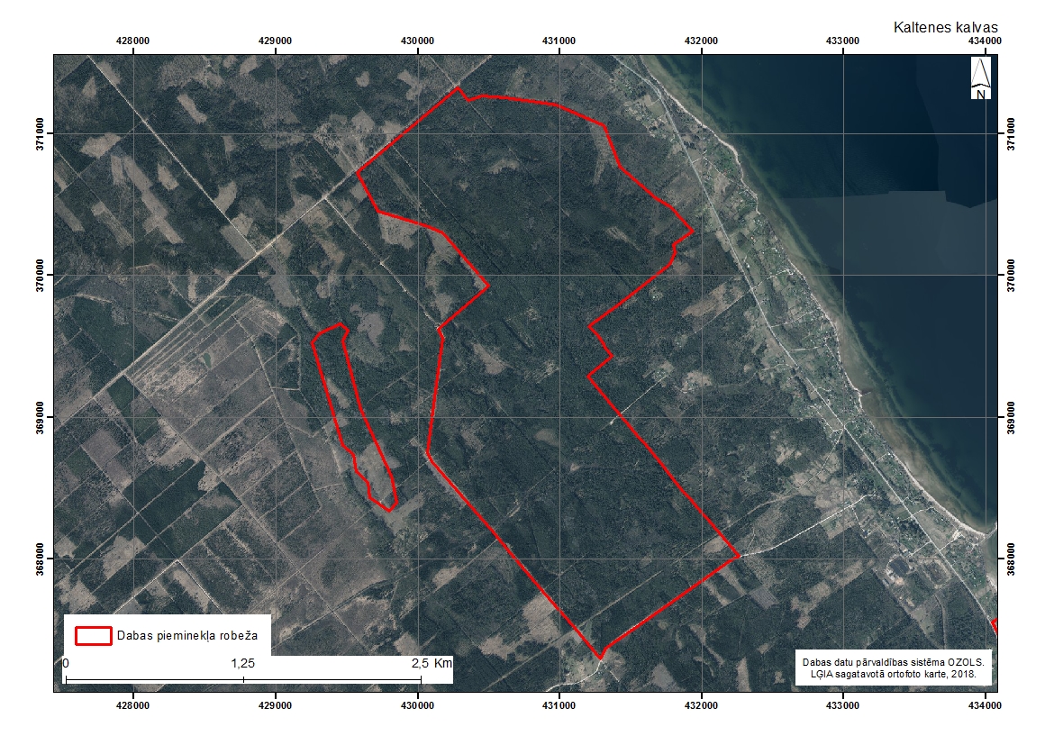 Dabas pieminekli veido Kaltenes kalvas ir morfoloģiski izteiksmīgākā daļa no laukakmeņu vaļņiem un klājieniem aptuveni 12 km garā un līdz 3-4 km platā erātisko akmeņu sakopojumu joslā, kas stiepjas starp Roju, un Valgalciemu gar mūsdienu Rīgas līča krasta līniju – 1-3 km attālumā no tās.
