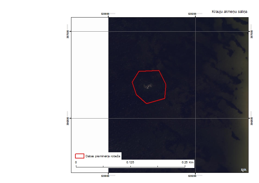 Dabas pieminekli pamatā veido zemūdens akmeņu krāvumu valnis, sastāvošs no magmatisko un metamorfo iežu laukakmeņiem. Valnis ir orientēts paralēli krastam - tā garums 100 m, turpinājums abos galos sēklī. Parasti saliņa 15-20 m caurmērā ir redzama, bet bieži atrodas zem ūdens. Saliņa ir veidojusies no laukakmeņiem, ko ledus krāvumi un pavasara vētras sastūmuši valnī. Lielāko akmeņu caurmērs ir 1 - 1,5 m. Saliņa, pēc nostāstiem, lēnām tuvojas krastam, to aizsargājot no viļņu iedarbības.