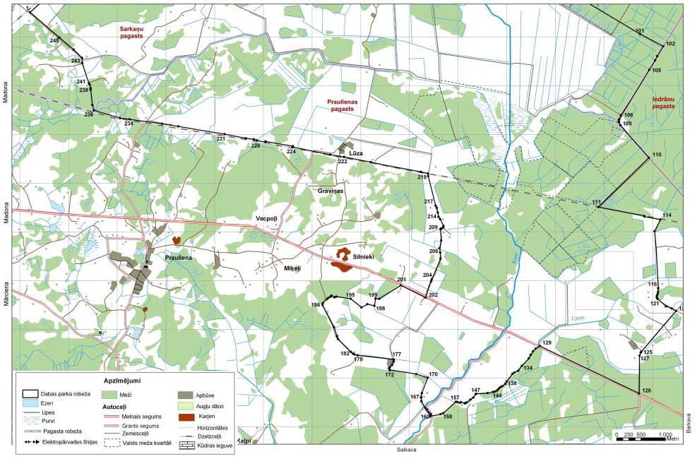 Administratīvais iedalījums: Madonas novada Praulienas un Sarkaņu pagasts
