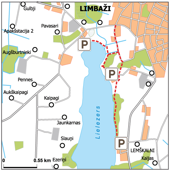 Dabas taka apliec Limabžu Lielezera ziemeļaustrumu galu un savieno pilsētas peldvietu un laivu bāzi ar skatu torni.