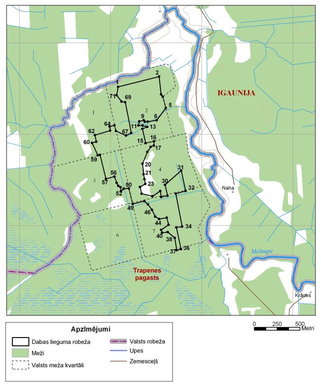 Teritorija izveidota boreālo mežu (skujkoku un jauktu mežu) un purvaino mežu aizsardzībai. Dabisko meža biotopu koncentrācijas vieta. Sastopami purvaini priežu, priežu-bērzu-egļu meži, kā arī sausi un mitri egļu-apšu-priežu meži netālu no Melnupes. Konstatētas ES Biotopu direktīvas 2.pielikuma auga sugas spilvainā ancīša audzes.