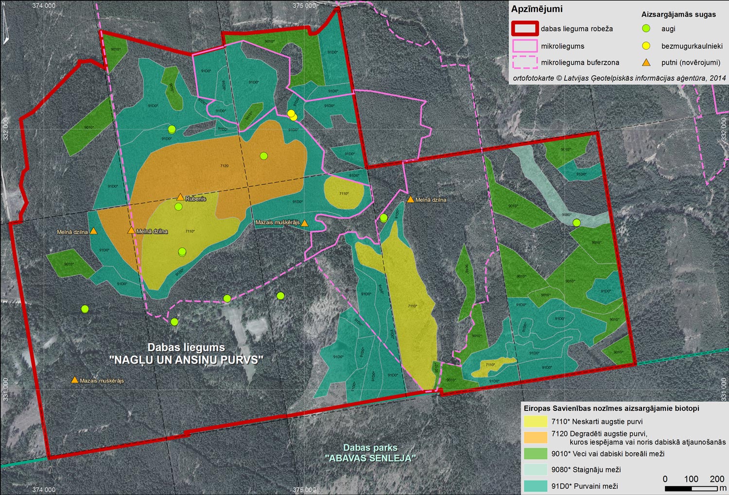 Teritorija izveidota, lai aizsargātu Eiropas Savienības aizsargājamo biotopu 7110* Neskarti augstie purvi, 7140 Pārejas purvi un slīkšņas, 91D0* Purvaini meži, 7120 Degradēti augstie purvi, kuros iespējama vai noris dabiskā atjaunošanās. Nagļu un Ansiņu purvu atdala ar sausiem priežu mežiem klāta iekšzemes kāpa. Teritorijā konstatētas vairākas Eiropas Savienības Putnu direktīvas sugas.