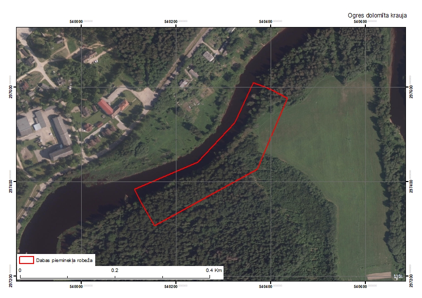 Dabas pieminekli Ogres upes labajā veido augšējā devona Franas stāva Daugavas svītas dolomīta atsegums ar brahiopodu un citu bezmugurkaulnieku, kā arī zivju atliekām. Nepārtrauktās atsegumu joslas garums ir 250 m, atsegumu augstums - līdz aptuveni 2 m.