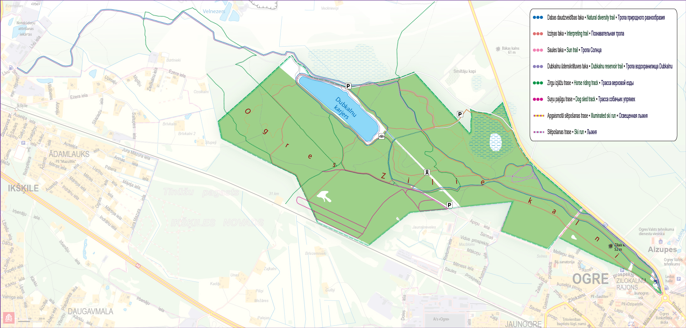 Dabas parkā "Ogres Zilie kalni" izveidots daudzveidīgu taku tīkls. Ikviens var atrast sev piemērotāko pastaigai vai sportam.