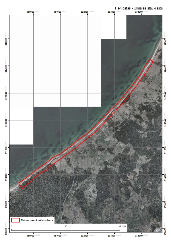 Dabas piemineklis Pāvilostas - Ulmales stāvkrasts pēc Latvijas jūras krasta erozijas risku noteicošajiem lokālajiem apstākļiem pieskaitāms pie krastiem ar augstu erozijas risku, apbūves un infrastruktūras apdraudējumu. Starp Pāvilostu un Jūrkalni kopš 1933./34. gada pamatkrasts ir atkāpies maksimāli par 80-130 m. Krasta maksimālā atkāpšanās atsevišķos posmos vienā vētrā sasniedz 10-15 m.
