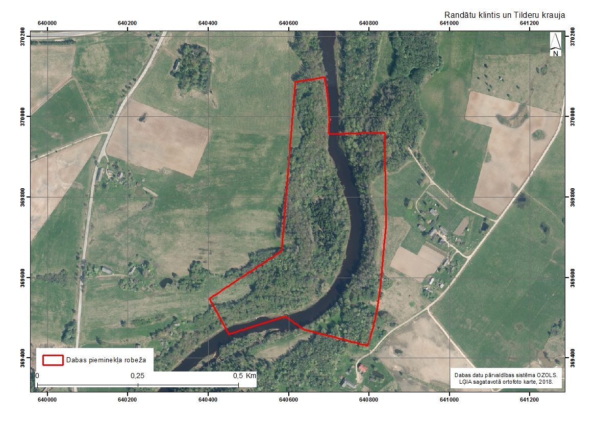 Randātu klinšu un Tilderu kraujas atsegumi abos Gaujas krastos ir izvietojušies aptuveni 550 m kopgarumā. Randātu klinšu atsegumi ir ievērojami augstāki un ainaviski krāšņāki.