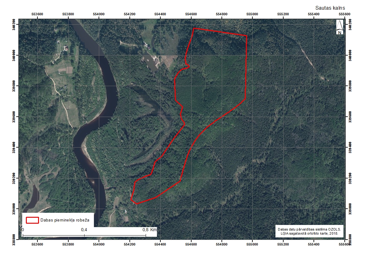 Visa Sautas kalna rietumu nogāze veido krāšņu un mežonīgi skaistu ainavu, kas stāvo nogāžu, gravu un kritušo koku dēļ ir grūti caurejama. Tikai atsevišķās vietās paveras tālāki skati uz Gaujas vecupi un senleju.