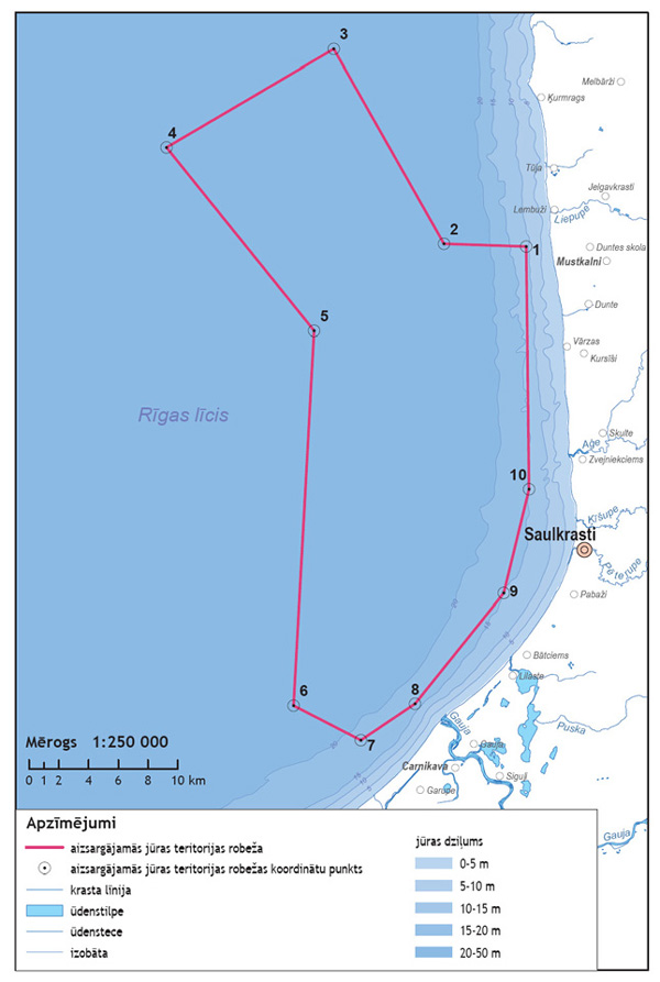 Administratīvais iedalījums: Teritorija atrodas Latvijas Republikas Baltijas jūras Rīgas līča austrumu daļā iepretim Saulkrastu un Carnikavas novadiem.