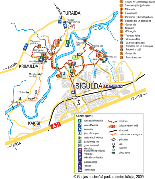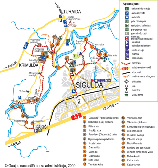 Gaujas nacionālo parku nedaudz var iepazīt arī izstaigājot kādu no kājāmgājēju maršrutiem Siguldā.