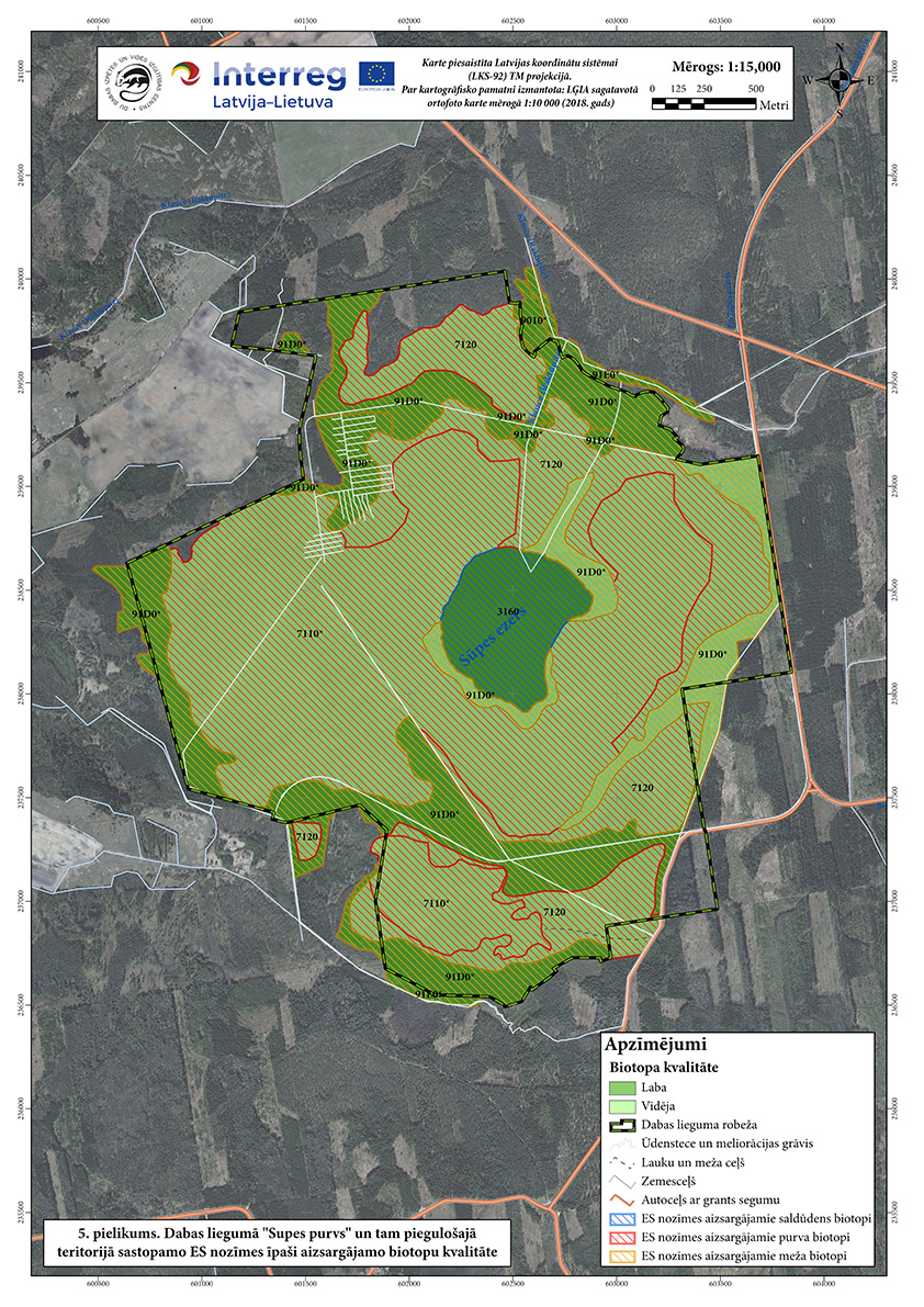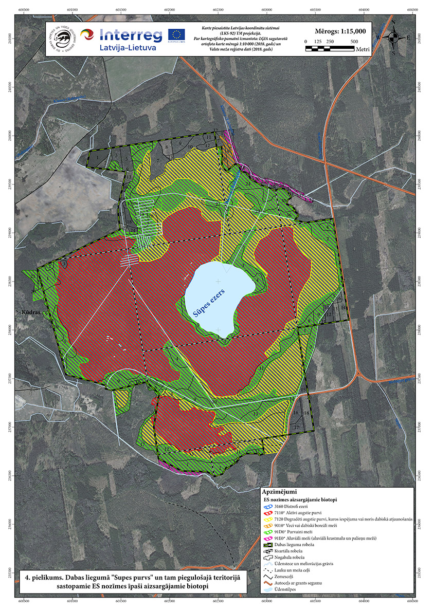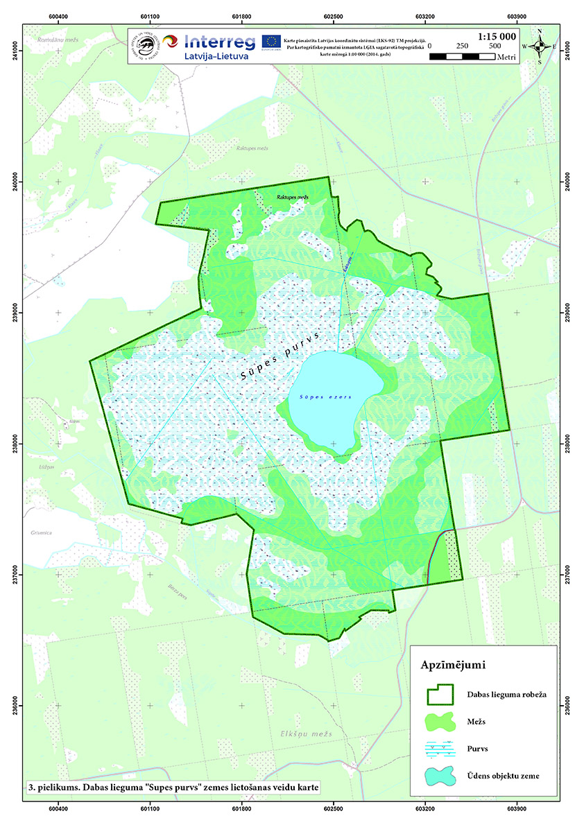 Nozīmīga augstā purva un distrofa ezera (Supes ezers) aizsardzības teritorija. Purvu aptver purvains priežu mežs. Piemērots biotops lielajiem plēsējiem, taču tos negatīvi ietekmē cilvēka radītie traucējumi (makšķerēšana, ugunskuru kurināšana u.c.). No ES Biotopu direktīvas biotopiem sastopami - neskarti augstie purvi, ieplakas purvos, purvaini meži, distrofi ezeri u.c.
