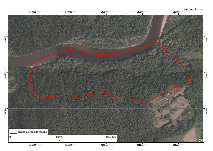 Ziedleju klinšu atsegumu joslas kopējais garums ir 860 m, bet atsegumos ir daudz pārtraukumu, kuri pat veido lielāko daļu joslas. Atsevišķo atsegumu augstums ir līdz 10 m, bet pamatkrasta kraujas stāvākās, apakšējās daļas kopējais augstums sasniedz 20 m.